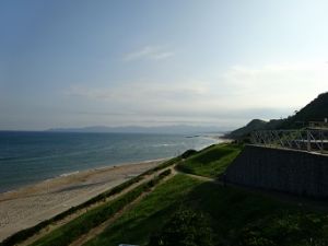 多伎サーフィンポイントは、地形は若干ドン深になっているので割れにくいようです。 崖下にあるから?オフショアやサイドショアを軽減してくれるので、面は綺麗な時が多いです。